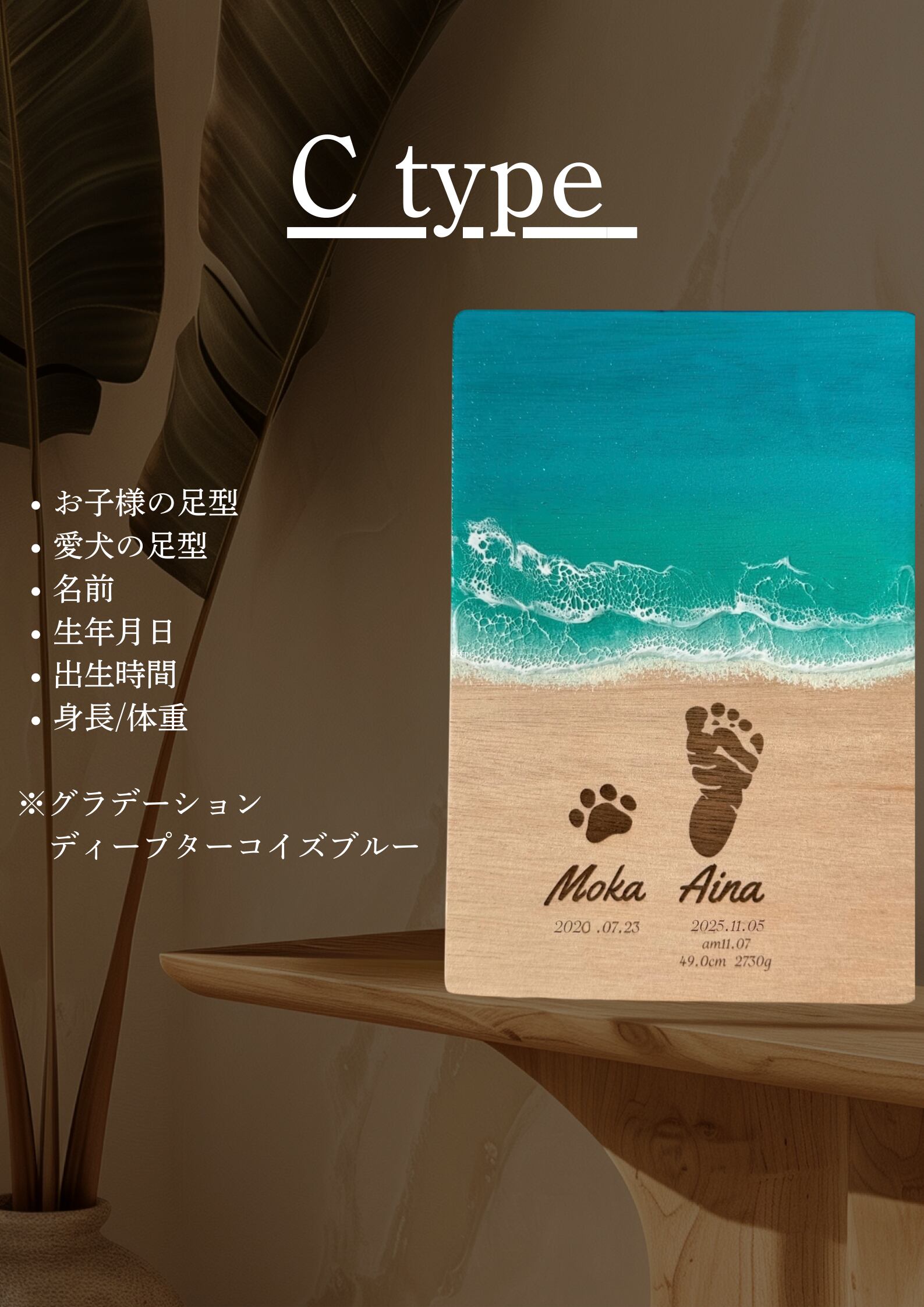 名入れ・日付・出生時間・身長/体重は基本内容として追加料金なしでお入れします。